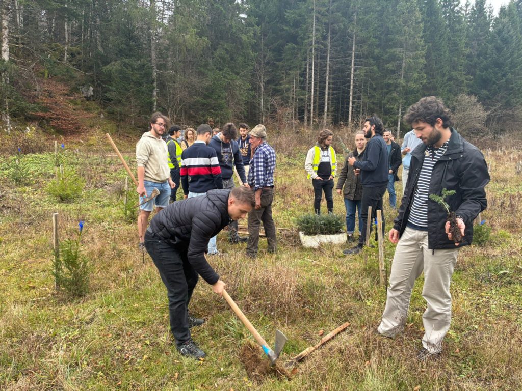 L’après-midi a été consacrée à la partie la plus symbolique de la journée : la mise en pratique. Non loin du lieu du repas, chaque étudiant a pu « mettre la main à la pâte » en plantant son propre arbre sur une parcelle dédiée.