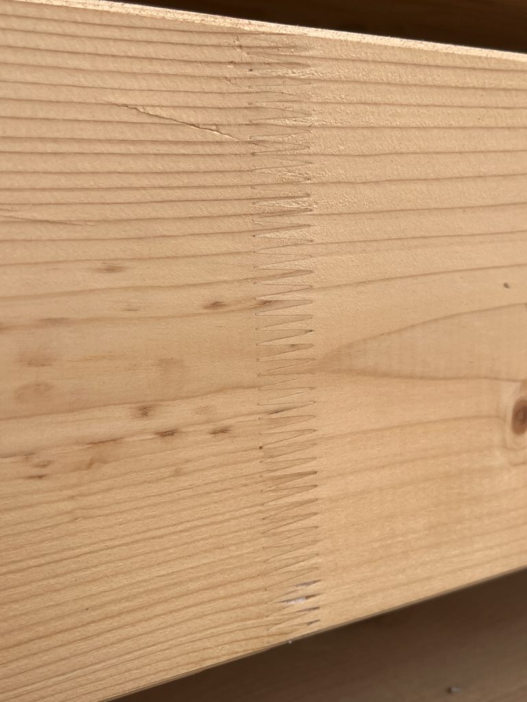 Le bois abouté est obtenu en assemblant plusieurs sections de bois massif. Cette technique augmente la résistance mécanique et réduit les déformations.